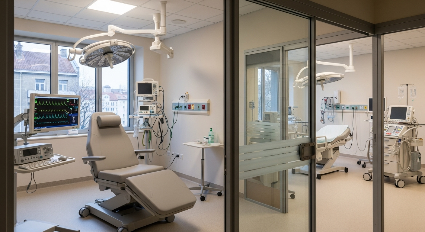 - Área de recuperación diferenciada: Es obligatorio disponer de un espacio específico y tranquilo para la recuperación postanestésica (conocido como URPA). Esta área debe estar equipada con una toma de oxígeno, sistema de aspiración y un monitor. El paciente debe estar bajo supervisión continua hasta cumplir los criterios de alta.